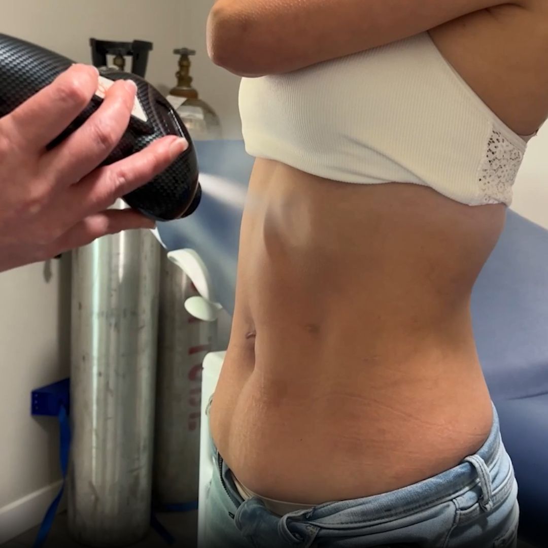 Cryogenic gun body sculpting is a non-invasive fat-reduction treatment that uses controlled cooling to freeze and destroy stubborn fat cells. By applying concentrated cold directly to targeted areas such as the abdomen, thighs, or flanks, the cryo gun induces cryolipolysis. It’s a precise, gentle way to contour the body without surgery, needles, or downtime.